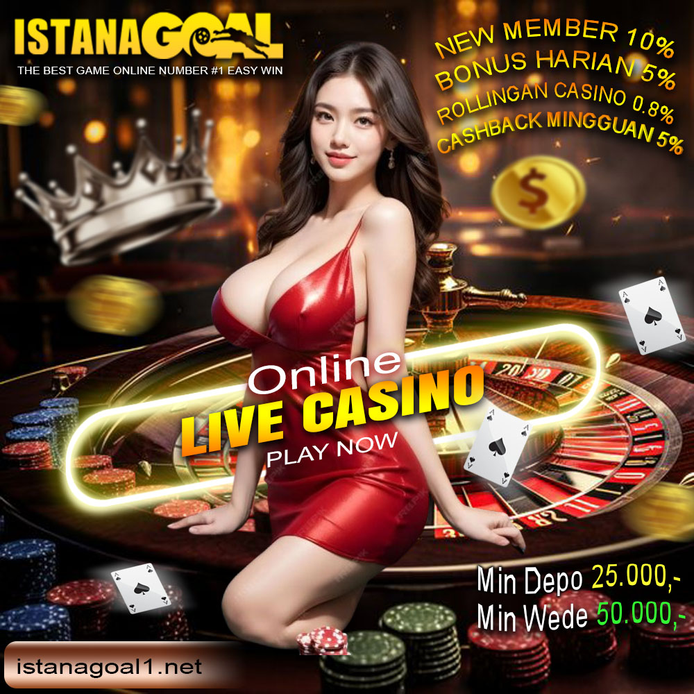 ISTANAGOAL hadir memberikan pengalaman terbaik, langsung dari dealer cantik dan profesional, dengan peluang menang besar dan bonus yang menggiurkan! 💃🔥