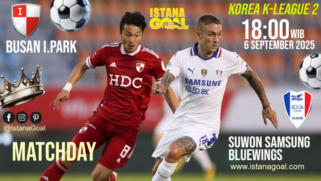 Big match K-League 2 hadir saat Busan I. Park menjamu Suwon Samsung Bluewings. Pertandingan akan digelar pada Sabtu, 6 September 2025 pukul 18:00 WIB dan dipastikan berlangsung sengit karena kedua tim sama-sama mengejar posisi atas klasemen.