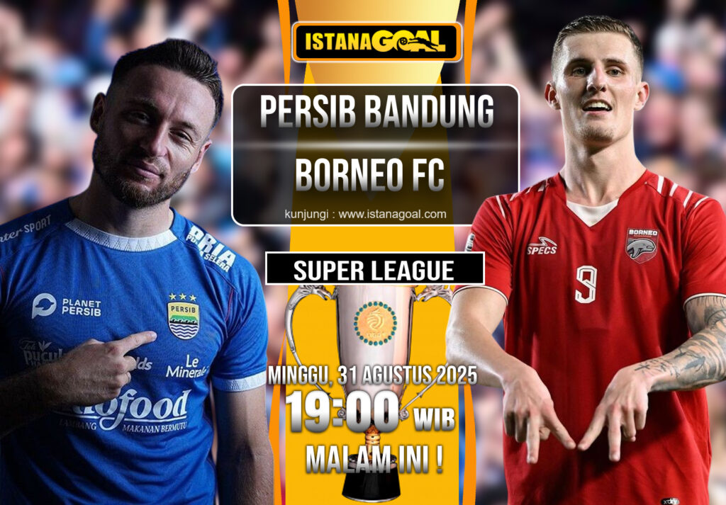 ISTANAGOAL.NEWS – Duel panas akan tersaji di ajang Super League malam ini, Minggu 31 Agustus 2025, saat Persib Bandung menjamu Borneo FC di Stadion Gelora Bandung Lautan Api. Kick-off dijadwalkan pukul 19.00 WIB.