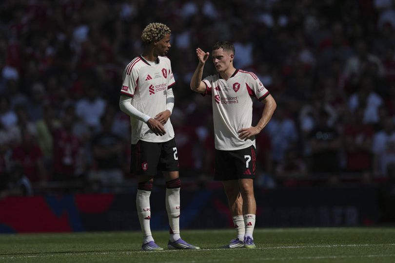 Liverpool kehilangan salah satu pemain utama di sisi kanan pertahanan. Jeremie Frimpong yang biasanya menempati posisi bek kanan harus menepi karena cedera hamstring. Ia dipastikan absen hingga jeda internasional mendatang.